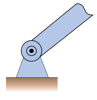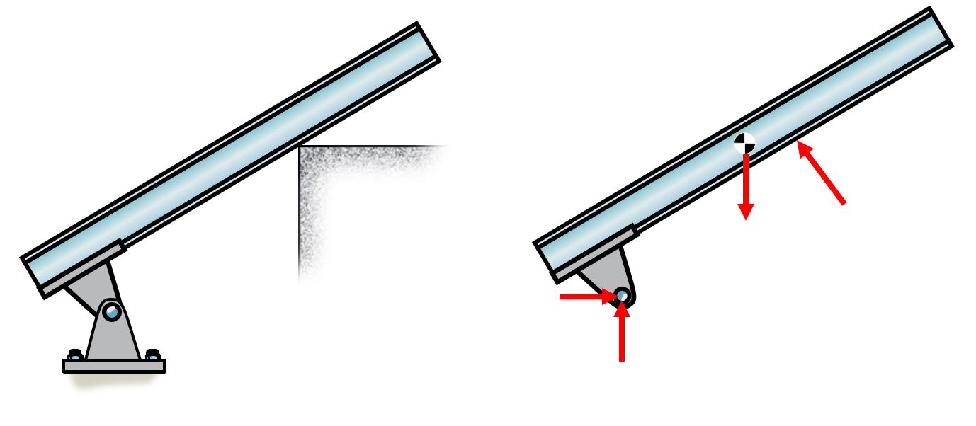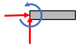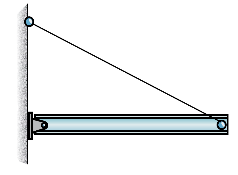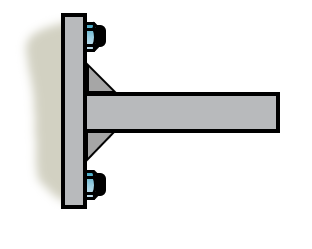 Here we have a rigid beam that is fixed to the wall, a so called cantilever beam. The supports of such beams carry both translational loads and rotation, i.e., moment.