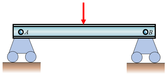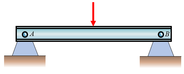 Both \(A\) and \(B\) are pins, giving 4 unknowns (\(R_{Ax}\), \(R_{Ay}\), \(R_{Bx}\), \(R_{By}\)) but still only 3 equations.
