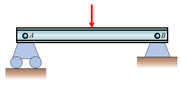 Both supports are rollers, giving only 2 unknowns (\(R_{Ay}\), \(R_{By}\)) for 3 equations.