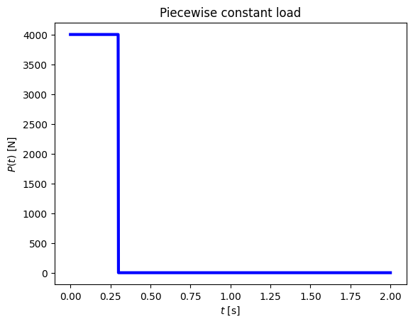 Let us assume that the box is given a push from \(P\) during a short time. Modeling a “push” can be interpretet in several way, we will start with the easy one first: The force is some constant value during a short period of time, i.e., let